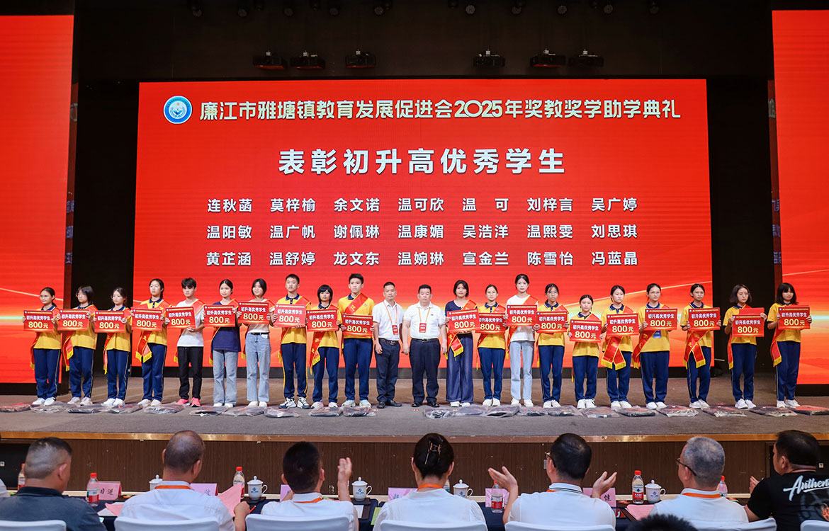 副市長韓陽,市政協(xié)副主席梁波、黃健、吳章炬,市教育局局長吳廷武,雅塘鎮(zhèn)委書記全世東,深圳港鴻基集團董事長、雅塘鎮(zhèn)教育發(fā)展促進會會長莫和,與有關(guān)部門領(lǐng)導(dǎo)以及鄉(xiāng)賢代表、獲獎師生出席了典禮。